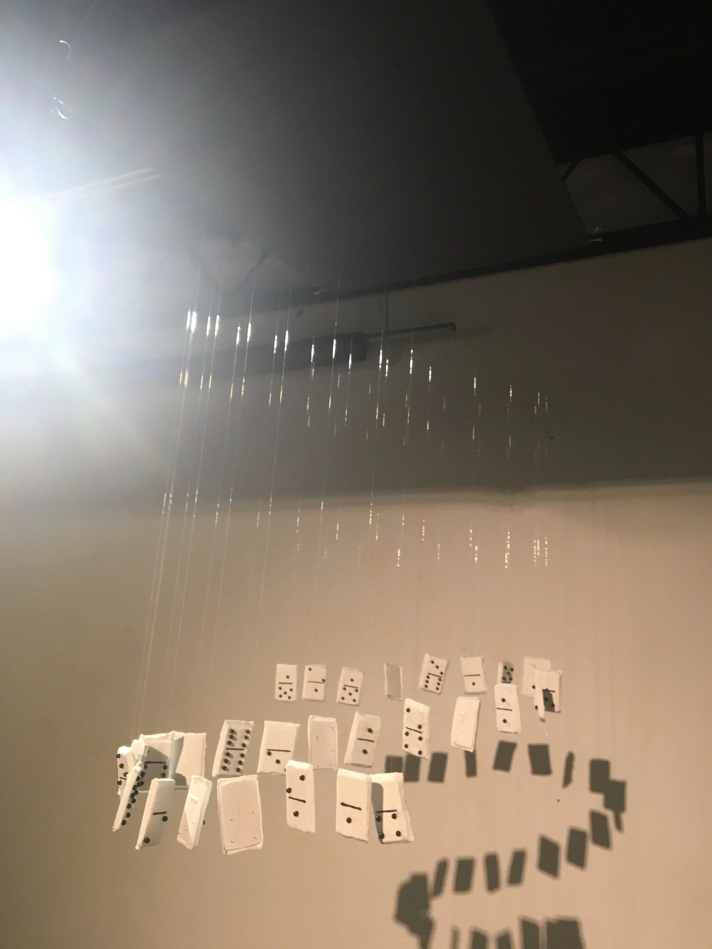 For this project we had to show motion by cutting glass and forming a shape. Then we had to make paper from scratch and then mold the paper over the cut glass. I hung dominoes I created from a slanted angle on a board to show a shadow on the wall.